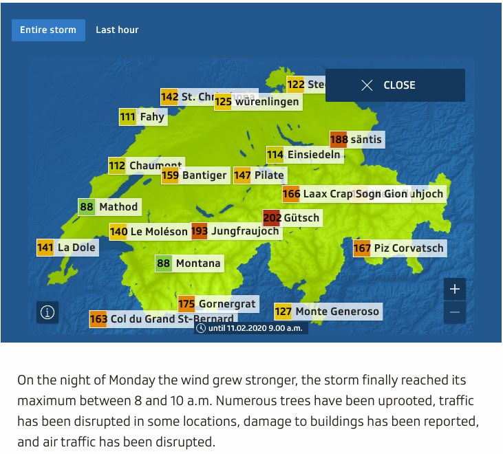 Yesterday, Meteo Swiss recorded winds to up to 200km/h (124 mph)
