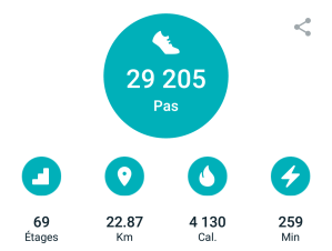 What a great day. No regrets at all to have take a day off yesterday. The first 14 km were made non stop, at a good pace. Then the legs and feet started to get a bit painful but would fad away after 1h later finally.